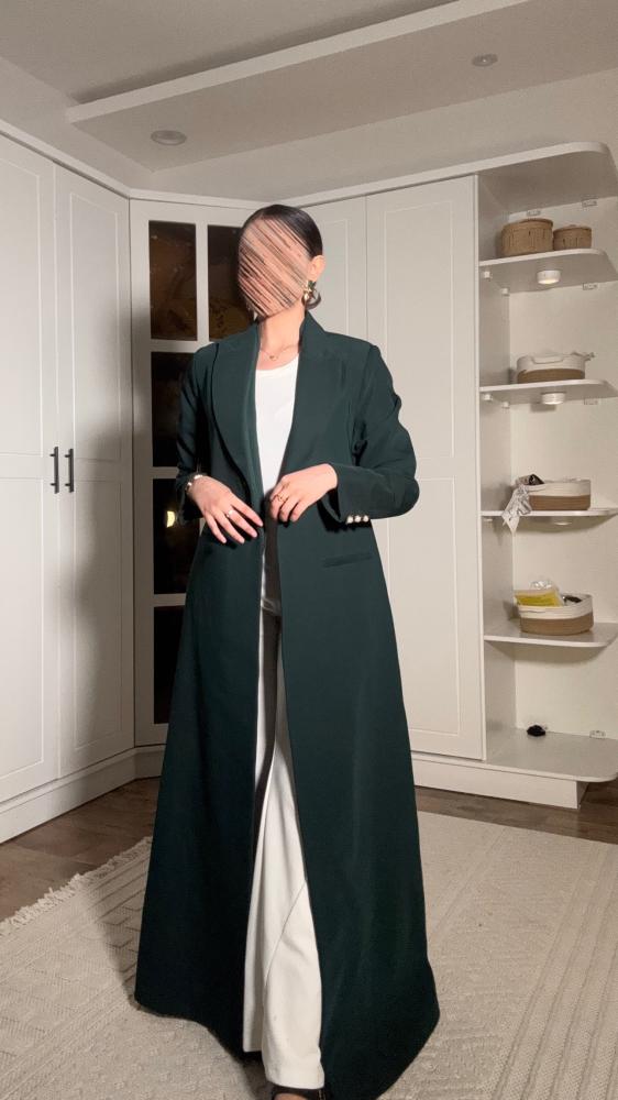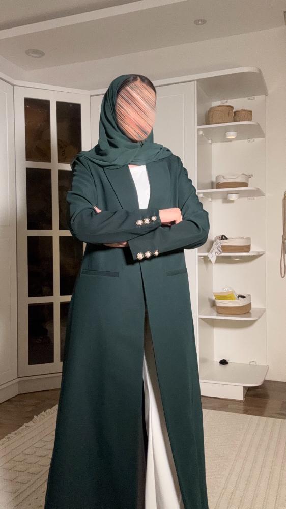 عباية أنيقة باللون الأخضر الملكي تضفي لمسة من الفخامة على إطلالتك، مصممة بأسلوب مودرن مع الحفاظ على الطابع التقليدي للعباية، فهي تجمع بين الاحتشام والأناقة.